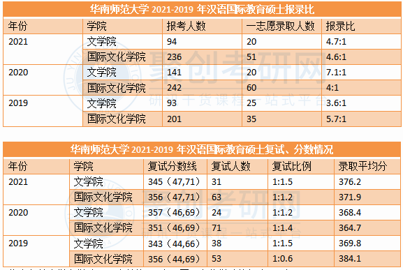华南师范汉硕2个学校报录比约在5:1,文学院招生人少,国际文化学院报考人数多,所以两个学院报录比差不多。