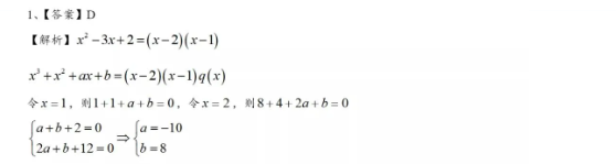 以上是聚创考研网为考生整理的"2022年管理类考研:数学部分-求a、b的值Part.232"的相关考研信息,希望对大家考研备考有所帮助! 备考过程中如有疑问,也可以添加老师微信juchuang911进行咨询。