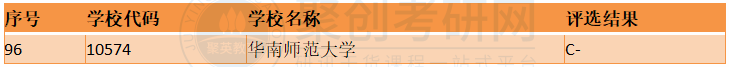 在全国第四轮学科评估中,华师的法学专业评估结果为C-,排在全国第96。
