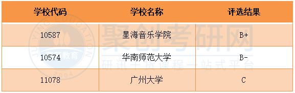 在全国第四轮音乐与舞蹈学学科评估排名中,广东地区一共有3所学校上榜。其中星海音乐学院学科评估为B+,是这几所院校里学科实力最强的了。华南理工和深大未上榜。