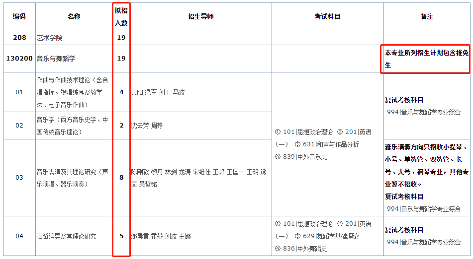 合并总成绩(百分制):①中国民族器乐表演艺术、键盘表演艺术、管弦乐表演艺术、声乐表演艺术:初试总成绩×20%+复试总成绩×80%。②作曲技术理论、音乐学、音乐教育、艺术管理、作曲与电子音乐作曲、指挥、乐器工艺、舞蹈编导:初试总成绩×30%+复试总成绩×70%。