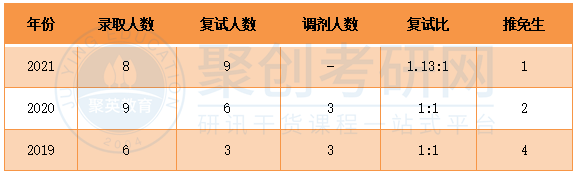 广州大学近几年的录取人数都在10人内,招生人数不多。19年和20年因为没有满足招生计划,所以对外调剂了3名考生。