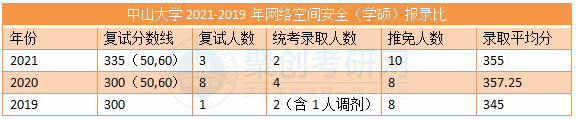 虽然中大网安复试分数线是335,但因为前几年招生人数少,竞争激烈,所以考高分才能稳录取,想考中大网安的同学可以参考录取平均分进行备考。