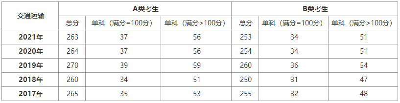 在文章开头,聚创考研晚玉学姐先放一张近五年交通运输专硕的国家线,同学们可以看看~