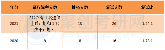 21年因为学生上线人数不多,没有满足招生计划,从而调剂了21名考生;20年调剂1名考生;19年没有招生调剂生。