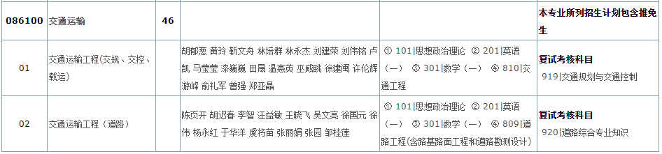 初试考试科目为101思想政治理论、204英语二、302数学二、888交通工程学;复试专业课:7665004交通运输理论与实践。