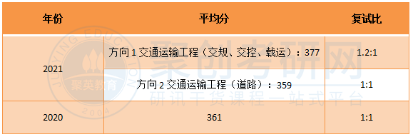 该专业的复试线在20年比较“特殊”。20年方向1交通运输工程(交规、交控、载运)的复试线为346分,方向2交通运输工程(道路)的复试线为310分,方向1比2的复试线高了36分。到了21年,两个研究方向的复试线都统一为310分。