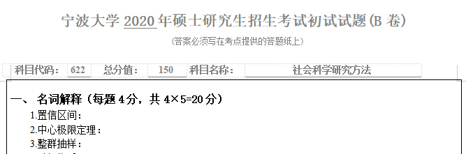 完整版请下载附件:2020年宁波大学622社会科学研究方法考研真题(完整版)