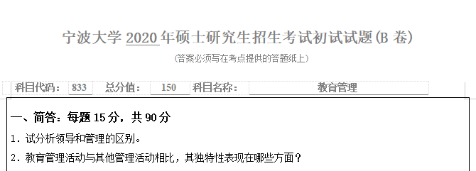完整版请下载附件:2020年宁波大学833教育管理考研真题(完整版)