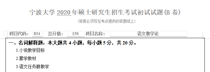 完整版请下载附件:2020年宁波大学834语文教学论考研真题(完整版)