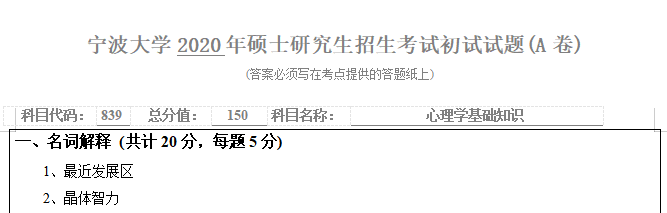完整版请下载附件:2020年宁波大学839心理学基础知识考研真题(完整版)