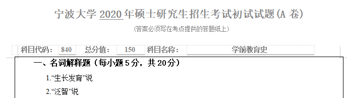 完整版请下载附件:2020年宁波大学840学前教育史考研真题(完整版)