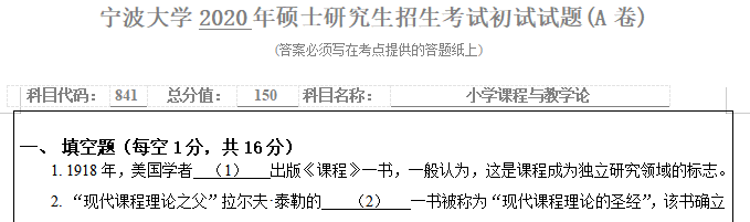 完整版请下载附件:2020年宁波大学841小学课程与教学论考研真题(完整版)
