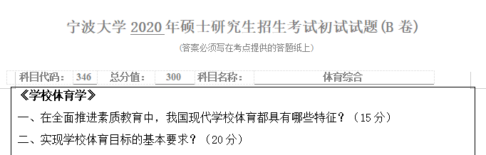 完整版请下载附件:2020年宁波大学346体育综合考研真题(完整版)