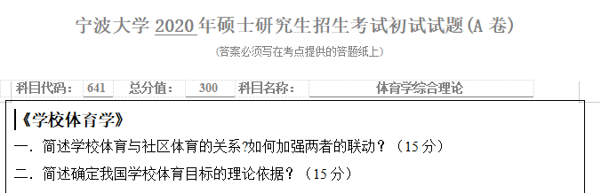 完整版请下载附件:2020年宁波大学641体育学综合理论考研真题(完整版)