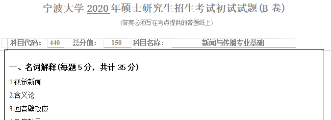 以上是聚创考研网为考生整理的"2020年宁波大学440新闻与传播专业基础考研真题(完整版)"的相关考研信息,希望对大家考研备考有所帮助! 备考过程中如有疑问,也可以添加老师微信juchuang911进行咨询。