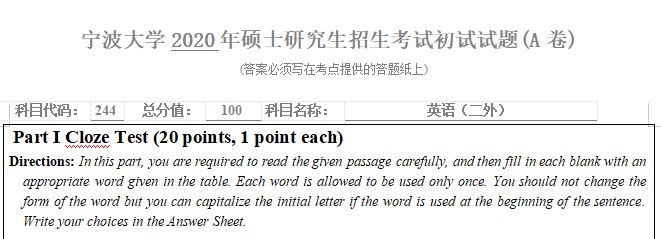 完整版请下载附件:2020年宁波大学244英语(二外)考研真题(完整版)