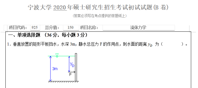 完整版请下载附件:2020年宁波大学925流体力学考研真题(完整版)