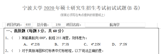 完整版请下载附件:2020年宁波大学935航海学考研真题(完整版)