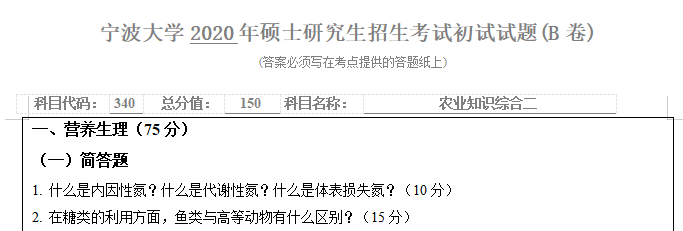 考研学习中,专业课占的分值较大。报考院校专业的考研专业课真题是专业课复习中必不可少的资料。聚创宁波大学考研小编为大家整理了2020年宁波大学340农业知识综合二原理考研真题(完整版),并且可以提供宁波大学考研专业课辅导,希望更多考生能够考上理想的院校。
