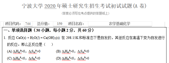 以上是聚创考研网为考生整理的"2020年宁波大学744农学基础化学考研真题(完整版)"的相关考研信息,希望对大家考研备考有所帮助! 备考过程中如有疑问,也可以添加老师微信juchuang911进行咨询。