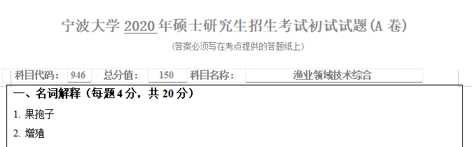 完整版请下载附件:2020年宁波大学946渔业领域技术综合初试试卷考研真题(完整版)