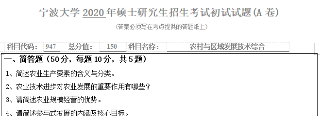 完整版请下载附件:2020年宁波大学947农村与区域发展技术综合初试试卷考研真题(完整版)