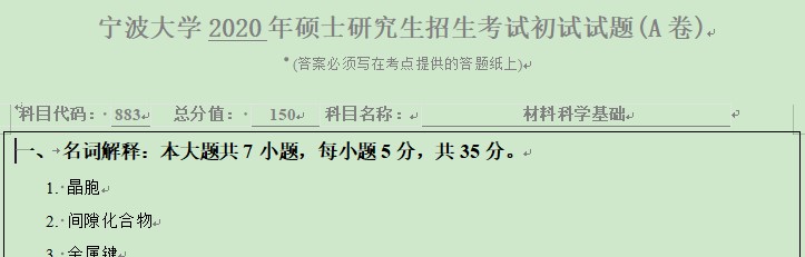 完整版请下载附件:2020年宁波大学883材料科学基础初试试卷考研真题(完整版)
