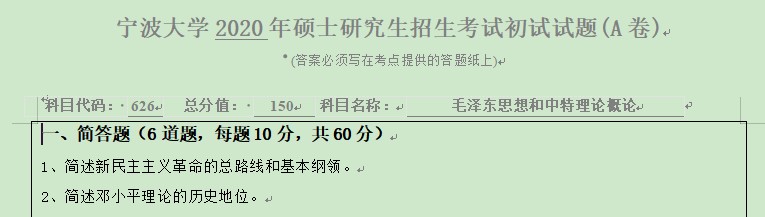 完整版请下载附件:2020年宁波大学626毛泽东思想和中特理论概论初试试卷考研真题(完整版)