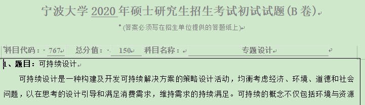 完整版请下载附件:2020年宁波大学767专题设计初试试卷考研真题(完整版)