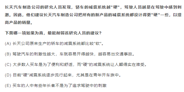 以上是聚创考研网为考生整理的"2023年管理类考研:逻辑部分-削弱题干Part.42"的相关考研信息,希望对大家考研备考有所帮助! 备考过程中如有疑问,也可以添加老师微信juchuang911进行咨询。
