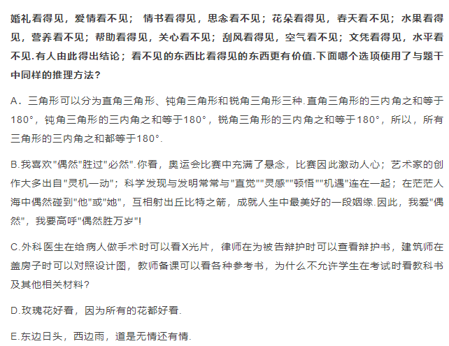 以上是聚创考研网为考生整理的"2023年管理类考研:逻辑部分-相同推理方法Part.45"的相关考研信息,希望对大家考研备考有所帮助! 备考过程中如有疑问,也可以添加老师微信juchuang911进行咨询。