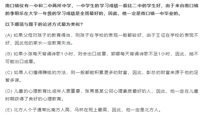 以上是聚创考研网为考生整理的"2023年管理类考研:逻辑部分-类似论述方式Part.47"的相关考研信息,希望对大家考研备考有所帮助! 备考过程中如有疑问,也可以添加老师微信juchuang911进行咨询。