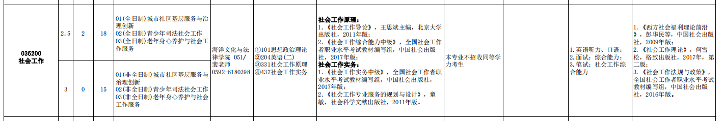 ①集美大学社会工作专业不招收推免,所以对于统考生来说比较友好。