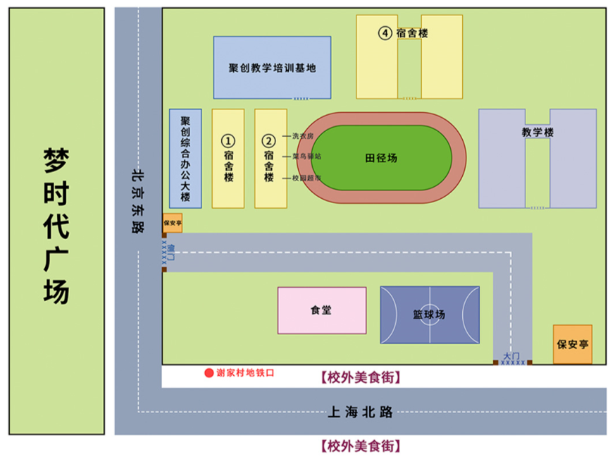 基地内食堂、超市、驿站、打印店、操场一应俱全,既能满足生活需求,又能让你更加集中精力学习。