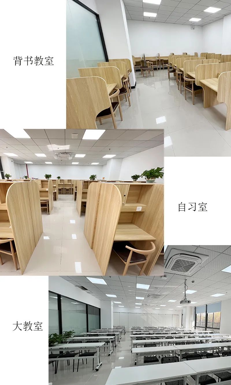 聚创考研作为寄宿考研行业的先锋队伍,有着趋于高中式的作息时间,实行半封闭式的管理模式,有安静优美的校区环境,全面完善的教学设施,丰富多彩的活动内容;交通便利,住宿条件优越。