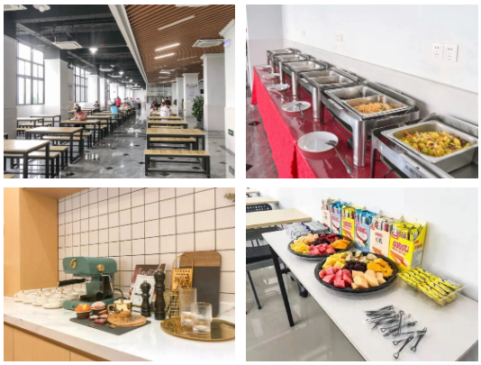 食堂有多种菜品可供选择,再也不用担心抢不到饭了!每日就餐耗费更少的时间,每天好像又多了1个小时!还有各种水果和下午茶,吃饱喝足就又可以元气满满的集中精力学习啦!