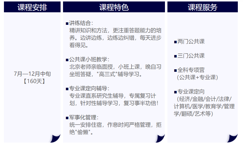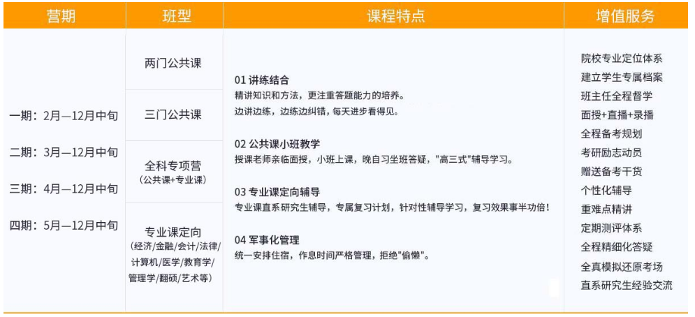 从入营到结束一共是半年时间,时间更紧张,快速进入备考阶段,大量的获取知识。广州考研集训营半年的价格有几千到上万不等,具体的根据同学们选择的课程来定。