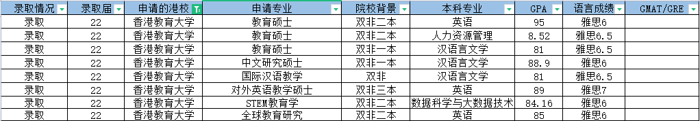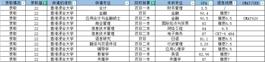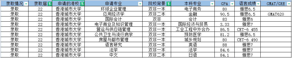 双非背景的学生在没有其他特别优秀的背景条件下,80左右的均分适合申请浸会、教大、岭南;80-85左右的均分可以尝试城大、理工的部分专业,以浸会保底;85-90的均分城大和理工有较大把握;90以上的均分则可以试着冲击一下港前三。