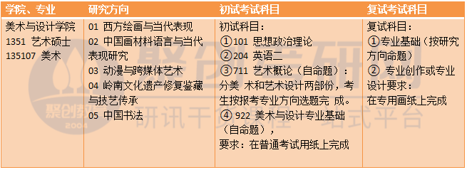 华南师范大学美术专业在美术学院进行招生,主要分为三个研究方向,三个研究方向分别招生,初试专业课二和复试内容各研究方向有所不同。