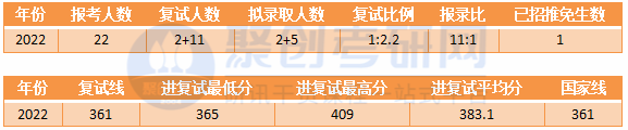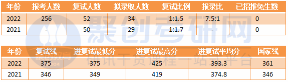 复试线是根据国家线划分,不过由于复试人数较少,实际进复试最低分会高于复试线。2022考研进复试最低分是365分,进复试平均分是383.5分(包含调剂生源),整体来说,复试同学之间的分差还是比较大的。