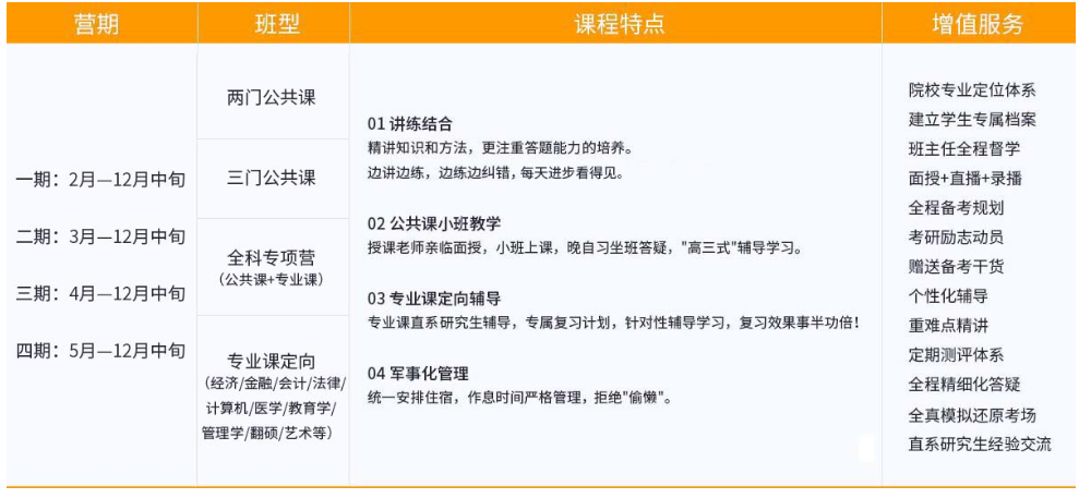 广州考研机构推荐口碑比较好的聚创考研,我们机构拥有热招课程:寄宿集训营、周末面授班、OMO课程、考研1对1、线上网课、寄宿自习室。