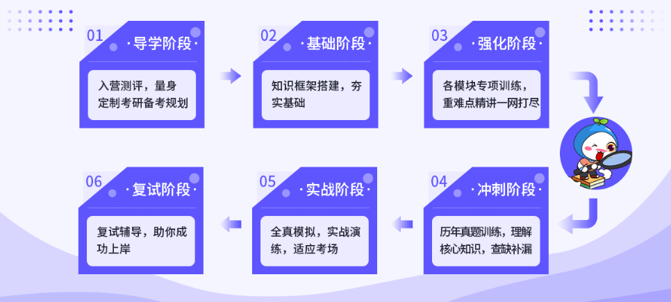 1、这里可以为学员们进行合理的复习规划,通过完善的教学体系,专业老师指导,以及提供优质的教学环 境为学员打造一个沉浸式的学习环境。
