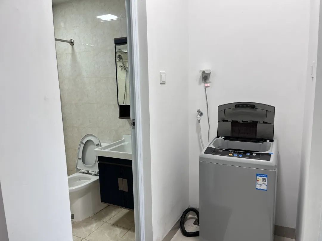 为保障大家住的舒服,每个房间都配备了空调、洗衣机、热水器等设施。另外,每个房间独立卫浴,干湿分区卫生间配有梳洗镜,墙上有置物架,方便放置物品,各种贴心设计,让你有家的体验与安心~!