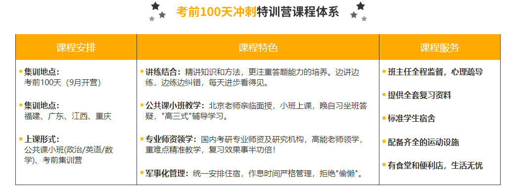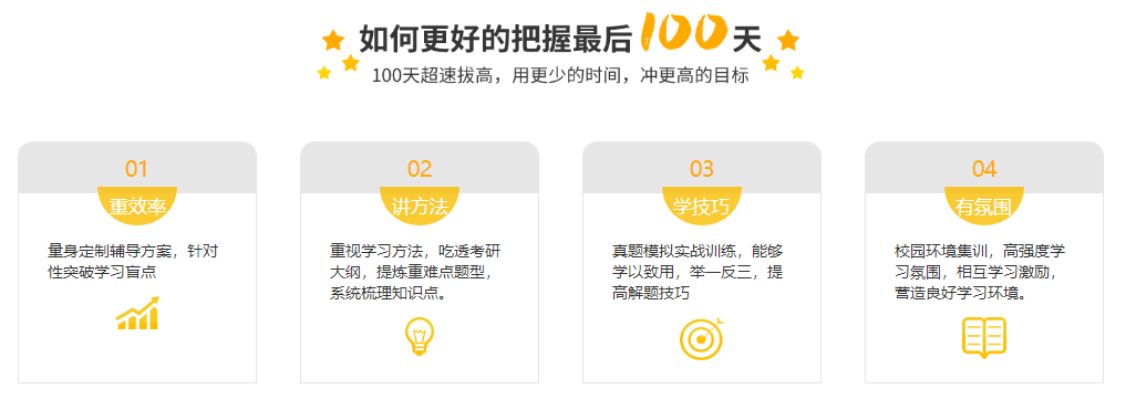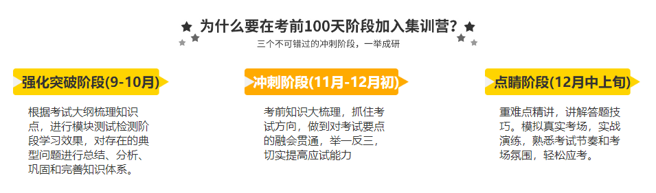 以上是聚创考研网为考生整理的"聚创考研广州百日冲刺集训营,广州考研百日冲刺班"的相关考研信息,希望对大家考研备考有所帮助! 备考过程中如有疑问,也可以添加老师微信juchuang911进行咨询。