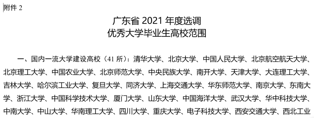学姐帮助过的同学中,有不少考上了内地公务员、教师编制。远的不说,我们且看深圳的中学教师招聘,英美加澳各国高校的留学生不在少数,更别说是中国香港啦,怎么能说是“不得考公、考编”呢。《广东省2021年度选调优秀大学毕业生高校范围》就是最好的证明:
