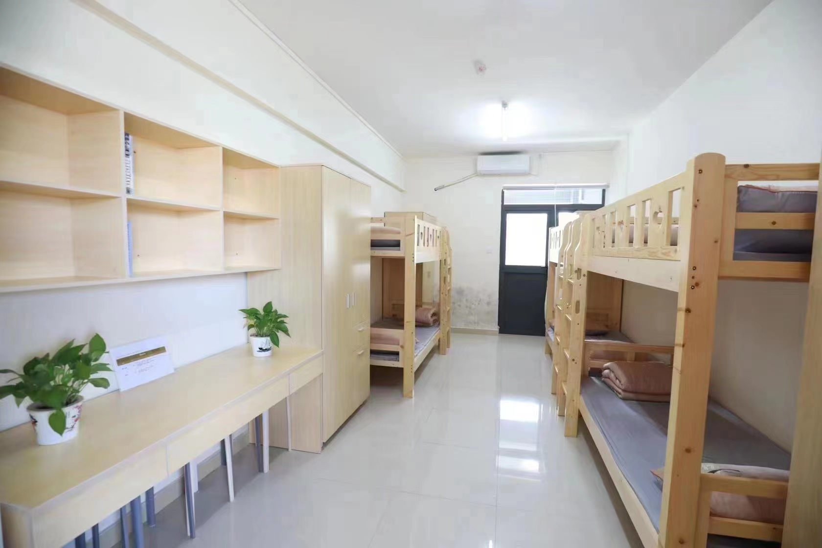 聚创寄宿考研学校宿舍环境宽敞明亮,每张床位对应一个写字桌,大家一起学习的同时又不会互相打扰。