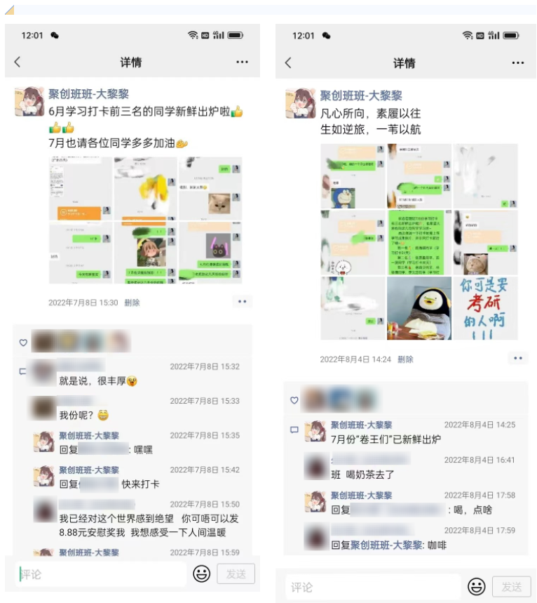校内配备专职管理老师定期巡逻,针对每个自习班进行氛围管理,禁止学生喧哗玩耍,确保学习氛围安静和谐。同时,考研学生学习期间碰到影响学习的问题可与管理老师反馈,老师将及时沟通解决。