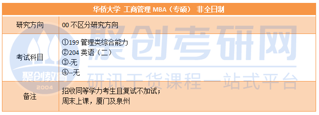 ⑤华大MBA招收同等学力考生,且复试不加试,目前华侨大学MBA在厦门校区和泉州校区都有开设班级。