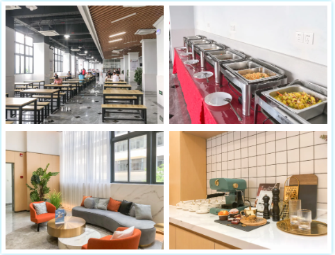 聚创寄宿学校的自修区配备了饮水机,每天24小时提供冷热水,每栋教学楼也有一个电梯室。在教室区域,单人单桌,互补打扰,浓厚的学习氛围。在这样的环境下,你是否担心自己不能完全投入精力,努力学习?
